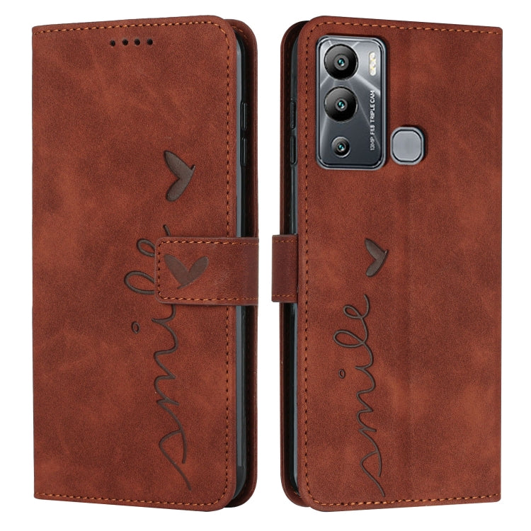 Funda de Cuero para Infinix Hot 12I Skin Feel con Patrón de Corazón (Marrón)
