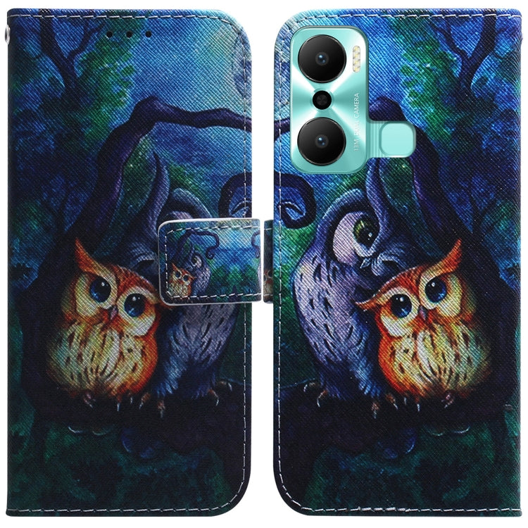 Funda de Cuero para Infinix Hot 20 Play con Tapa y Dibujo Coloreado (Búho)