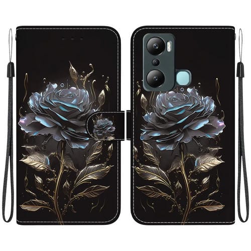 Funda de Cuero para Infinix Hot 20I con Dibujo Coloreado y Textura de Cristal (Rosa Negra)