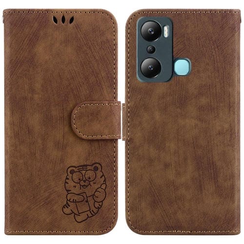 Funda de Cuero en Relieve para Infinix Hot 20I Little Tiger (Marrón)