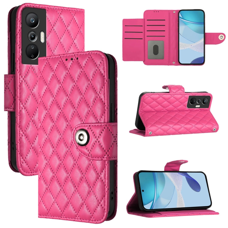 Funda para Infinix Hot 20S y Hot 20 Pro de Cuero con Tapa, Textura Rómbica y Cordón (Rojo Rosa)