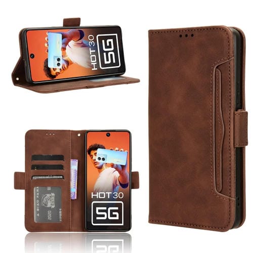 Funda de Cuero para Infinix Hot 30 5G X6832 con Textura de Becerro y Ranuras para Tarjetas (Marrón)