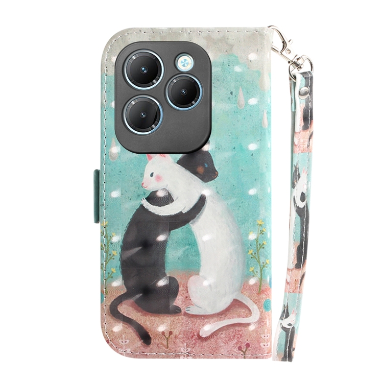 Funda de Cuero para Infinix Hot 40/40 Pro con Tapa Horizontal y Diseño 3D (Gato Blanco Negro)