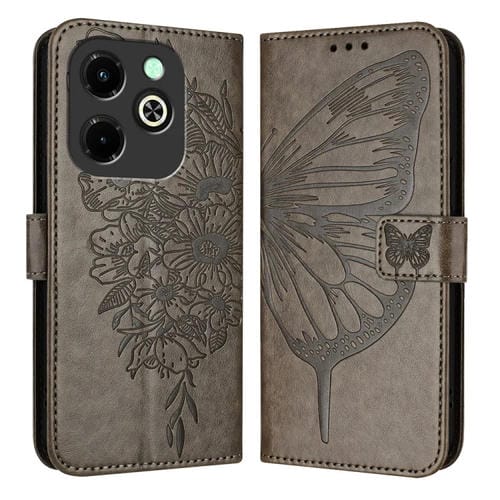 Funda de Cuero para Infinix Hot 40I con Mariposa en Relieve (Gris)