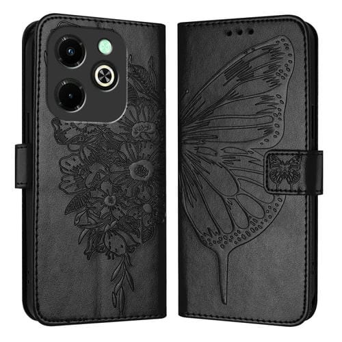 Funda de Cuero para Infinix Hot 40I con Mariposa en Relieve (Negro)