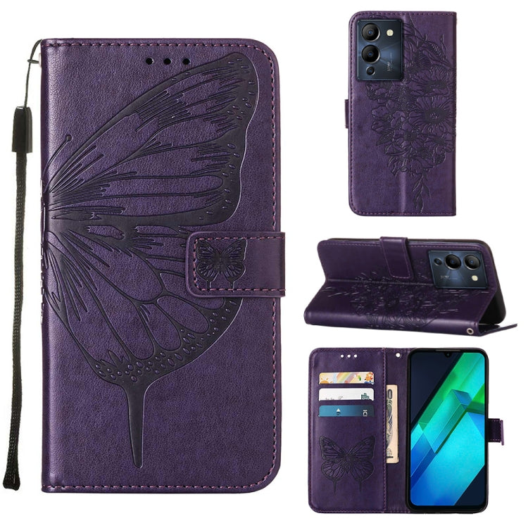 Estuche para teléfono Infinix Note 12 G96 cuero con tapa de mariposa en relieve (Púrpura Oscuro)