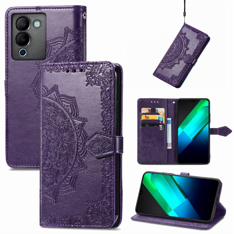 Estuche para Teléfono Infinix Note 12 G96 Mandala Flower Cuero En Relieve (Púrpura)
