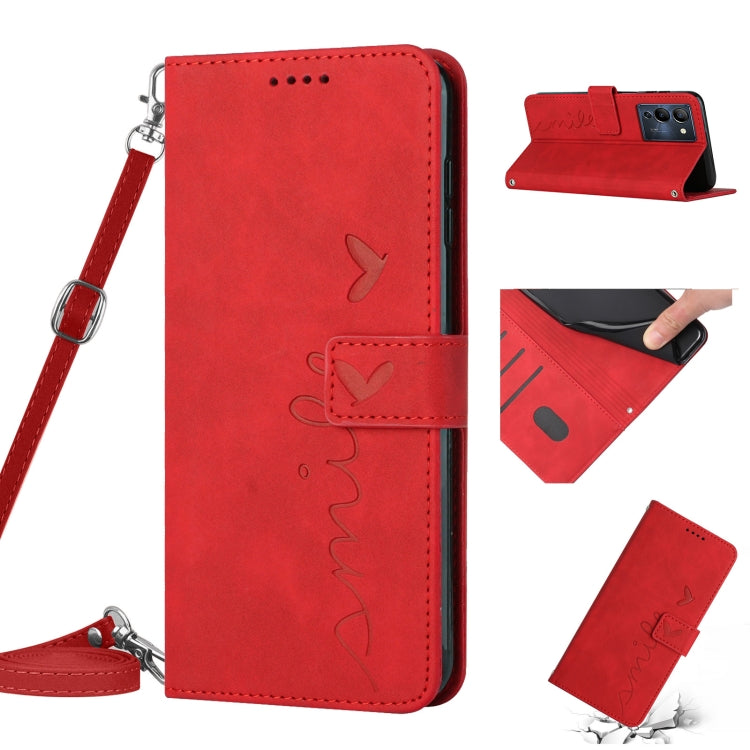 Funda de Cuero para Infinix Note 12 G96 Skin Feel con Patrón Corazón y Cordón (Rojo)