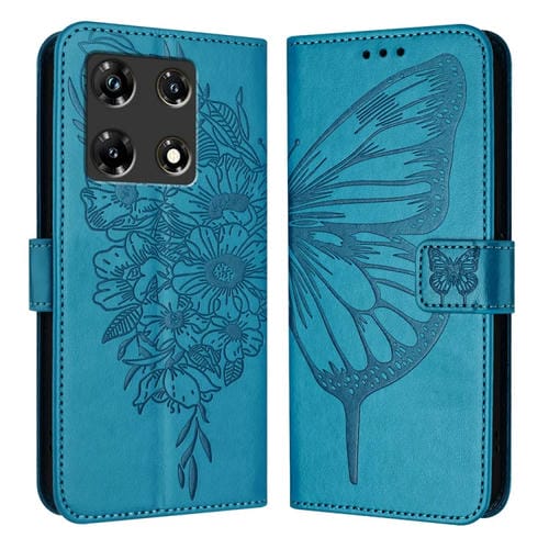 Funda para Infinix Note 30 Pro y Note 30 5G de Cuero con Mariposa en Relieve (Azul)