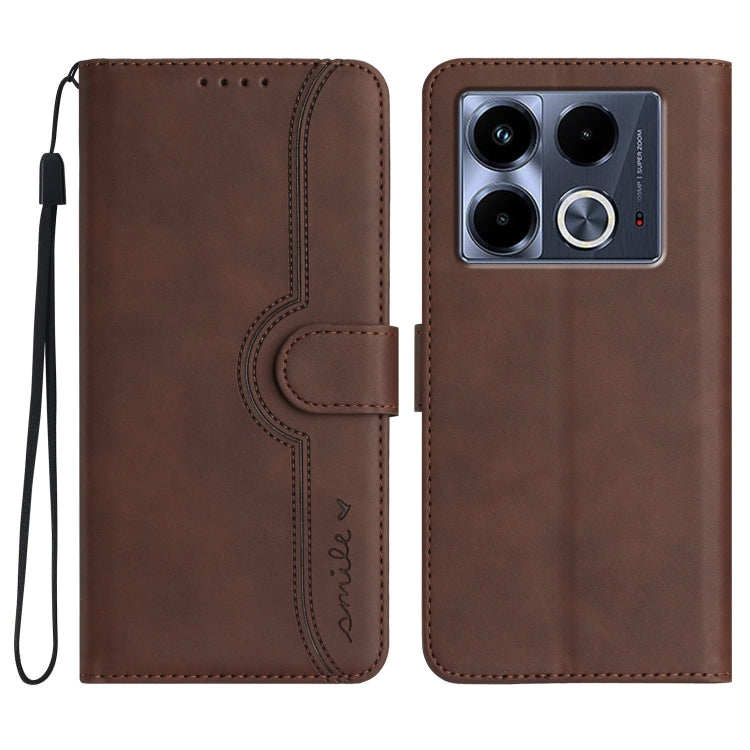 Funda de Cuero para Infinix Note 40 4G con Sensación de Piel y Patrón de Corazón (Marrón)