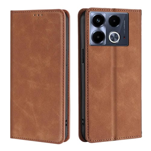 Funda de Cuero Magnética para Infinix Note 40 4G Skin Feel (Marrón Claro)