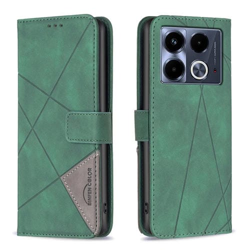 Funda para Teléfono Infinix Note 40 5G Cuero Textura Rombo Hebilla Magnética (Verde)