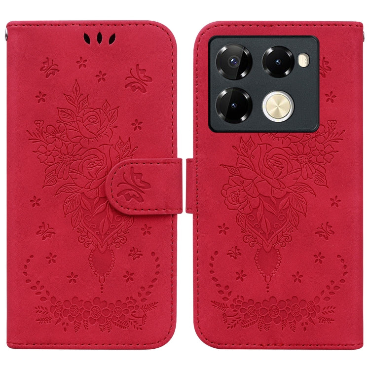 Funda para Teléfono Infinix Note 40 Pro 4G/5G Cuero Relieve Mariposa y Rosa (Rojo)