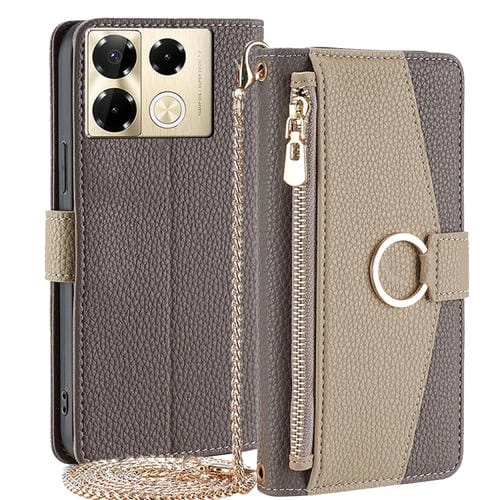 Funda de Cuero Crossbody para Infinix Note 40 Pro 4G con Textura Litchi (Gris)