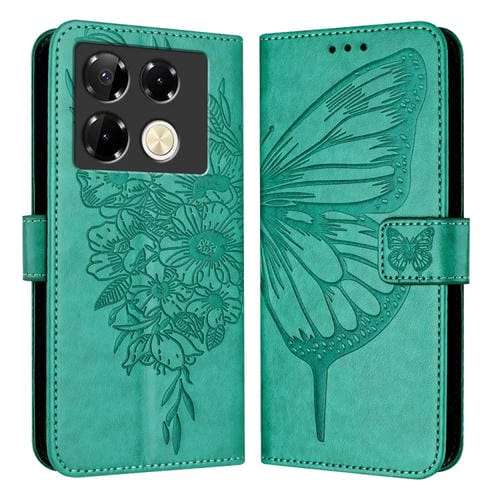 Funda de Cuero para Infinix Note 40 Pro 4G con Mariposa en Relieve (Verde)