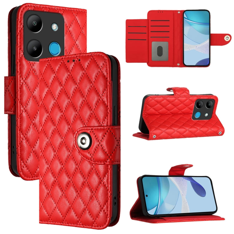 Funda de Cuero con Tapa para Infinix Smart 7 HD con Textura Rombal y Cordón (Rojo)