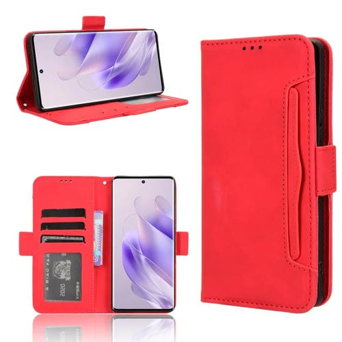 Funda de Cuero para Infinix Zero 30 4G con Skin Feel y Ranuras para Tarjetas (Rojo)
