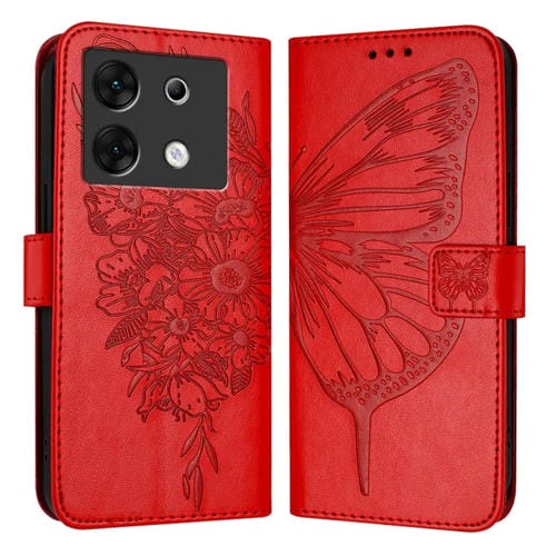 Funda de Cuero para Infinix Zero 30 5G con Mariposa en Relieve (Rojo)