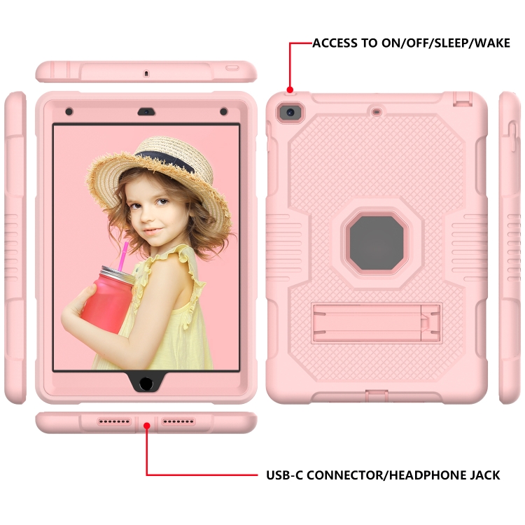 Funda para iPad 10.2 2021 Contrast Color Robot Silicona a Prueba de Golpes + PC Tablet Case (Oro Rosa)