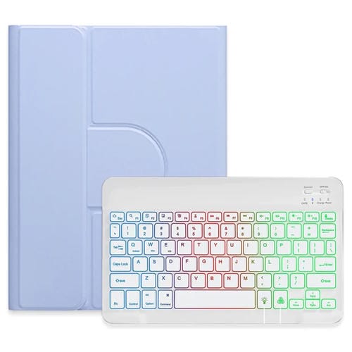 Funda teclado para iPad Air 2022 y iPad Pro 11 2021 Bluetooth retroiluminación 360 grados (Púrpura Claro)