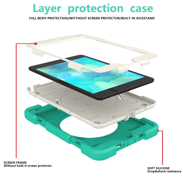 Funda para iPad Mini 4 2015 y Mini 2019 Silicone + PC con Soporte y Correa (Menta Verde)