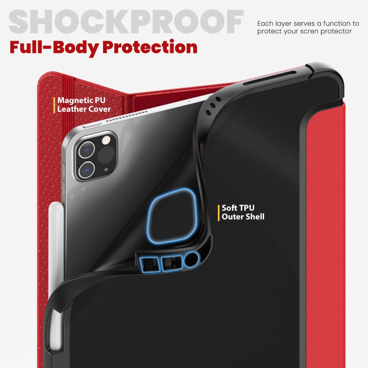 Funda para Tableta Inteligente iPad Pro 11 2022 y Air 10.9 2022 Cuero Fibra de Carbono (Rojo)