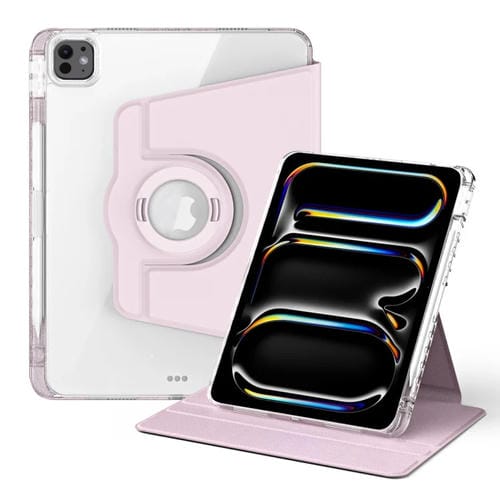 Funda de Piel Acrílica Transparente Desmontable con Rotación 360 Grados para iPad Pro 11 (2024) (Rosa)