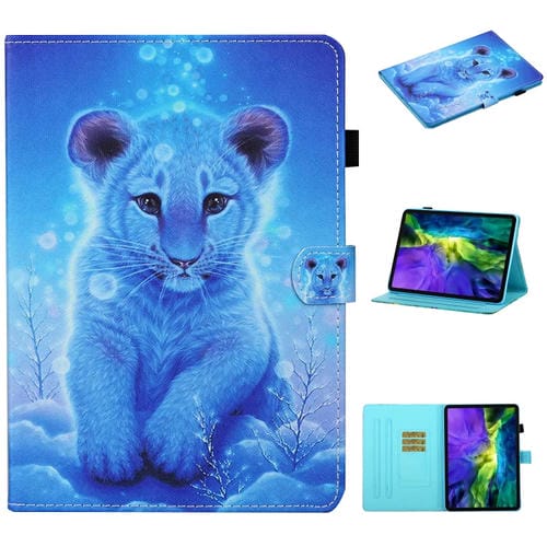 Funda inteligente de cuero para iPad Pro 11 (2024) con dibujo a color y costuras (Tigre Pequeño)