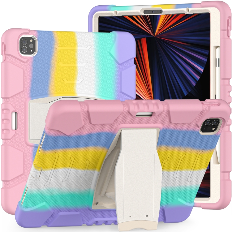 Marco de Pantalla de Protección + Funda Silicona a Prueba de Golpes para iPad Pro 12.9 (2022/2021) (Rosa Colorido)