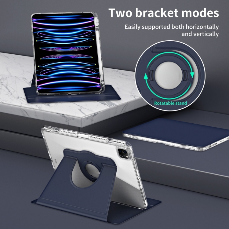 Funda para Tableta iPad Pro 13 2024 Cuero Acrílico Transparente Desmontable Rotación 360 (Azul Oscuro)