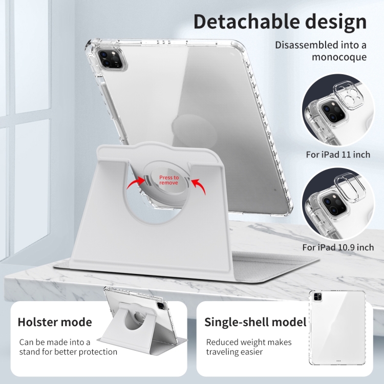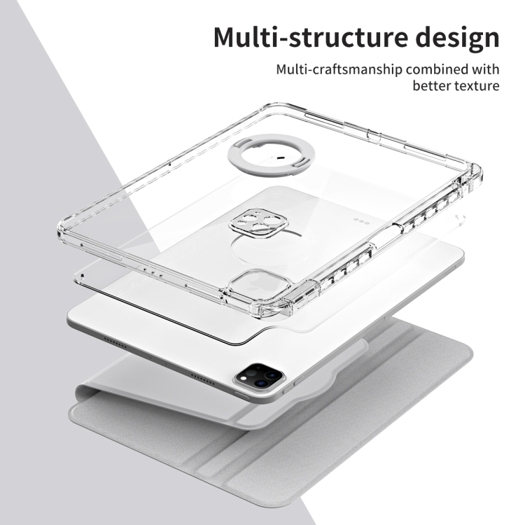 Funda para Tableta iPad Pro 13 2024 Cuero Acrílico Transparente Desmontable Rotación 360 (Gris)