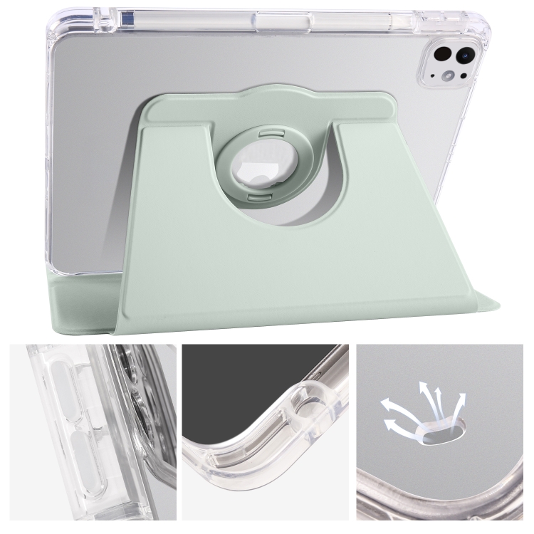 Funda para Tableta iPad Pro 13 (2024) Cuero Desmontable Rotación 360 Acrílico Transparente (Verde Claro)