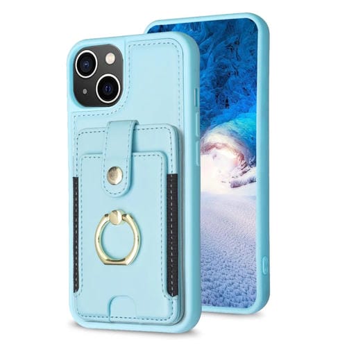 Funda para iPhone 11 Bf27 Anillo de Metal Tarjeta Bolsa Titular Caja del Teléfono (Azul)