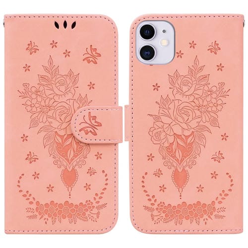 Funda de Cuero iPhone 11 Butterfly Rose En Relieve para Teléfono (Rosa)