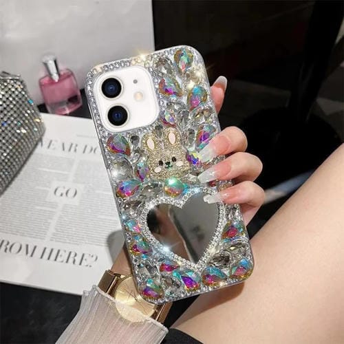 Funda para Teléfono iPhone 11 Diamond Mirror Bunny Hecha a Mano para PC (Colorido)