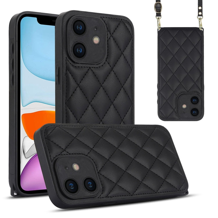 Estuche para Teléfono iPhone 11 con Textura Rómbica y Cordón Doble (Negro)