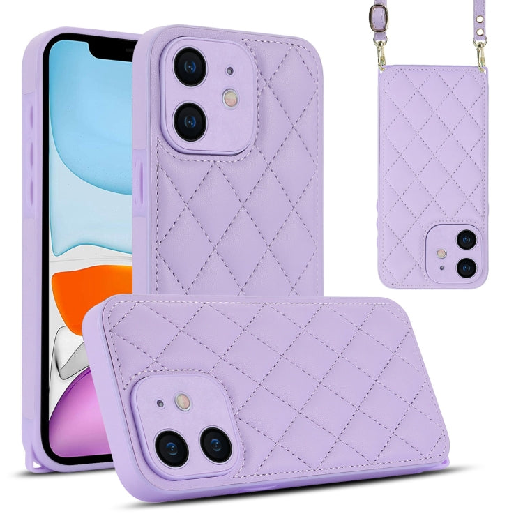 Estuche para Teléfono iPhone 11 Textura Rómbica Cordón Doble (Púrpura)