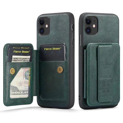 Funda para Teléfono Fierre Shann iPhone 11 Oil Wax con Tarjetero Cuero de Vaca (Verde)
