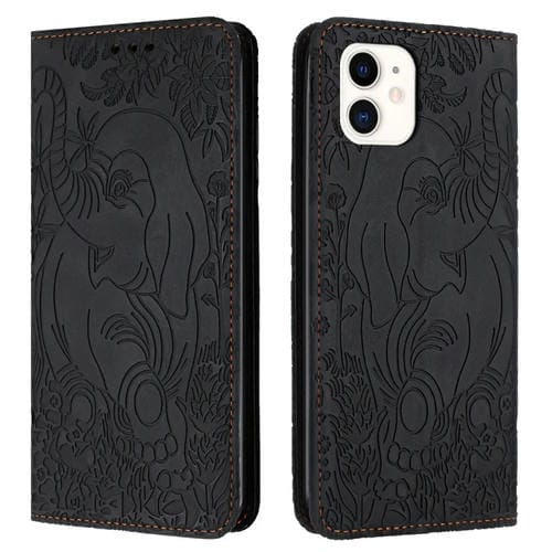 Funda de Teléfono iPhone 11 Cuero Relieve Elefante Retro (Negro)