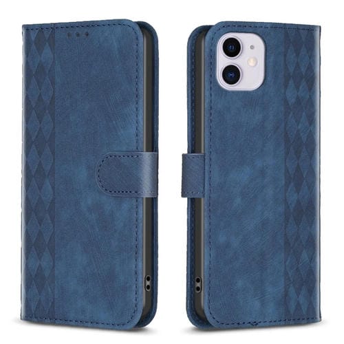 Funda de Teléfono iPhone 11 Cuero En Relieve a Cuadros (Azul)