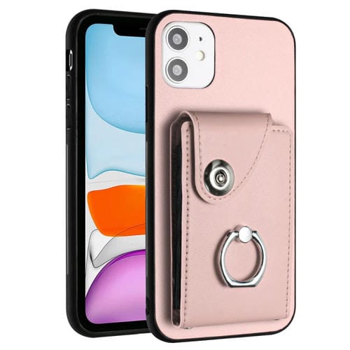 Funda para Teléfono iPhone 11 con Soporte para Anillo y Bolsa para Tarjeta de Órgano (Rosa)
