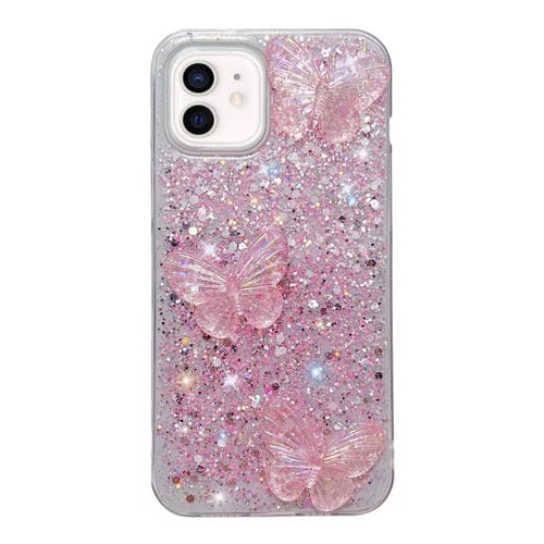 Funda para Teléfono TPU Epoxi iPhone 11 Mariposas de Cristal y Lentejuelas Estrelladas (Rosa)