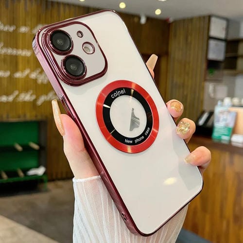 Funda para Teléfono iPhone 11 Magsafe PC Galvanizada Transparente (Rojo Vino)