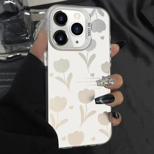 Caja de Teléfono Híbrida TPU para PC para iPhone 11 Pro con Pintura Plateada (Tulipanes Huecos Blancos)