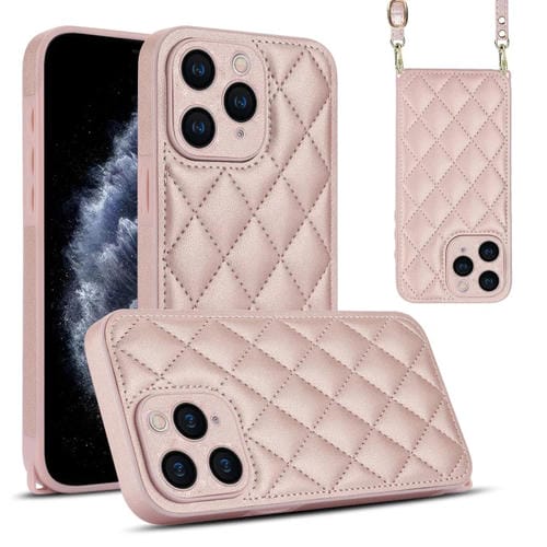 Estuche para Teléfono iPhone 11 Pro Textura Rómbica y Cordón Doble (Oro Rosa)