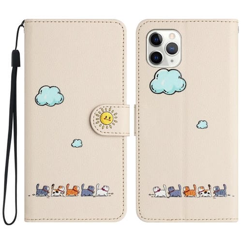 Funda para teléfono iPhone 11 Pro Cuero con Gatos de Dibujos Animados (Beige Blanco)