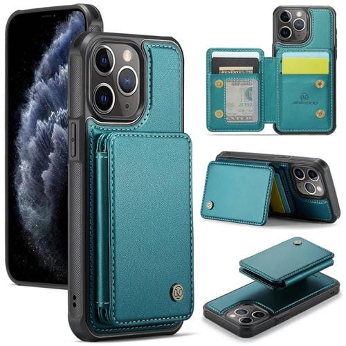 Estuche para Teléfono Jeehood J05 para iPhone 11 Pro Cuero Rfid Magnético Empresarial (Azul Verde)