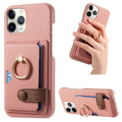 Funda para Teléfono iPhone 11 Pro Litchi Leather Oil Edge Ring Card Back (Rosa)