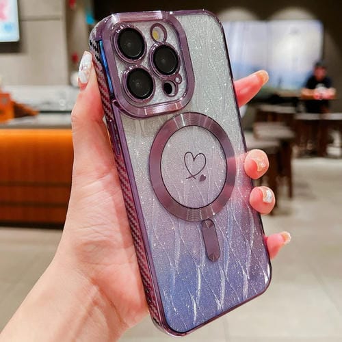 Estuche para Teléfono iPhone 11 Pro Loves Leaves Magsafe TPU Brillo Degradado Fibra de Carbono (Púrpura)