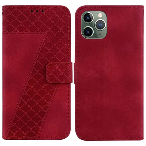 Funda de Teléfono iPhone 11 Pro Max Cuero En Relieve 7 En Forma (Rojo)